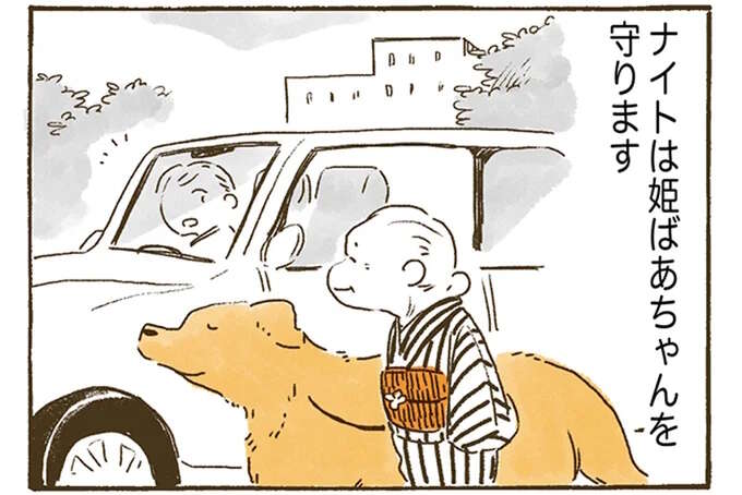 夫に先立たれた姫ばあちゃんは、小柄で耳が遠くておしゃべりが大好き。ゴールデンレトリバーの騎士(ナイト)は、賢くて甘えん坊でおばあちゃんが大大大好き。『姫ばあちゃんとナイト』(KADOKAWA)は、そんな2人が紡ぐ優しい日々の物語。近所のおまわりさんや女子高生など街の人々に見守られながら過ごす毎日は、穏やかで幸せで楽しくて...。人気シリーズ1~2巻からほっこりするエピソードをお楽しみください。