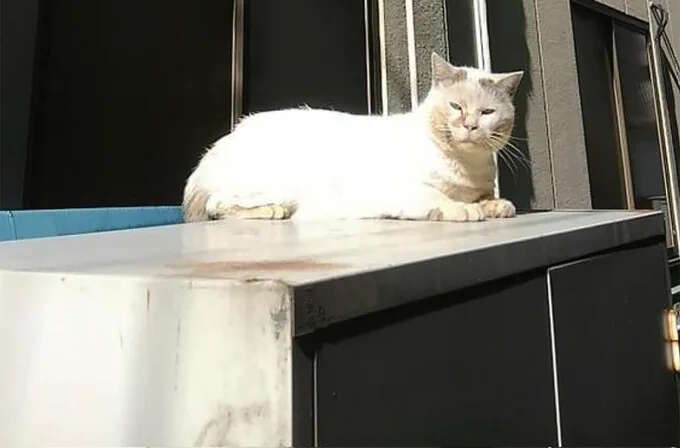 地域のボス猫だったシロちゃん。外猫時代のミケちゃんに店先でごはんを与えると、ミケちゃんは必ず半分残して裏にいるシロちゃんを呼びに行っていました。