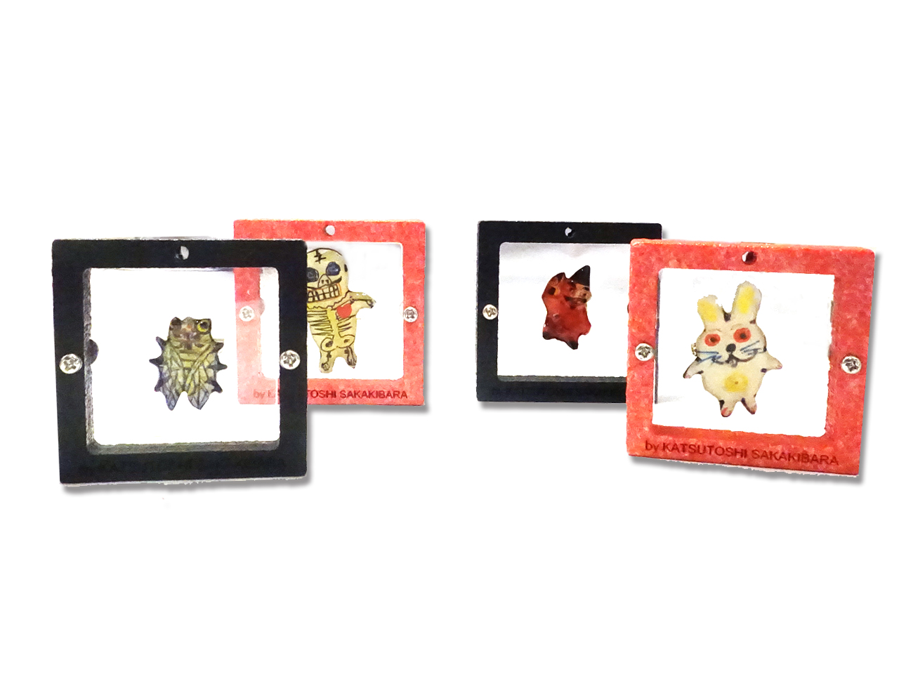 亀有の「ギャラリーバルコ」を拠点に活動するアーティスト「榊原勝敏」さんとのコラボグッズ。アート作品バッジ専用の硬質フエルト製フレームアクセサリー。好みのバッジを組み合わせる。