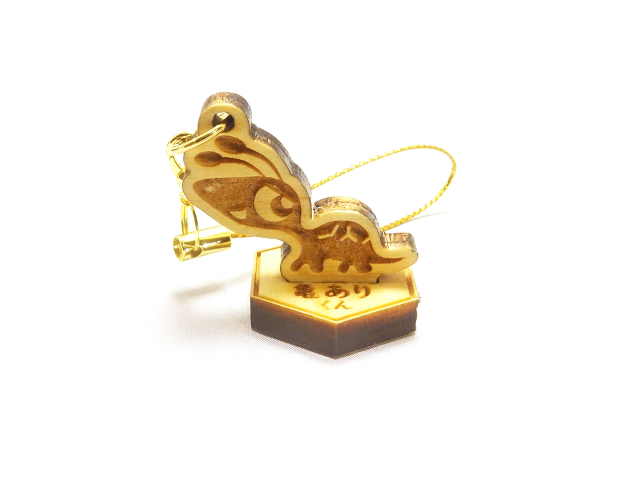 葛飾亀有の商店街を象徴するキャラクター「亀ありくん」のキャラクターグッズ。木製のシルエットに亀有を表した亀甲型のプレートパーツを融合